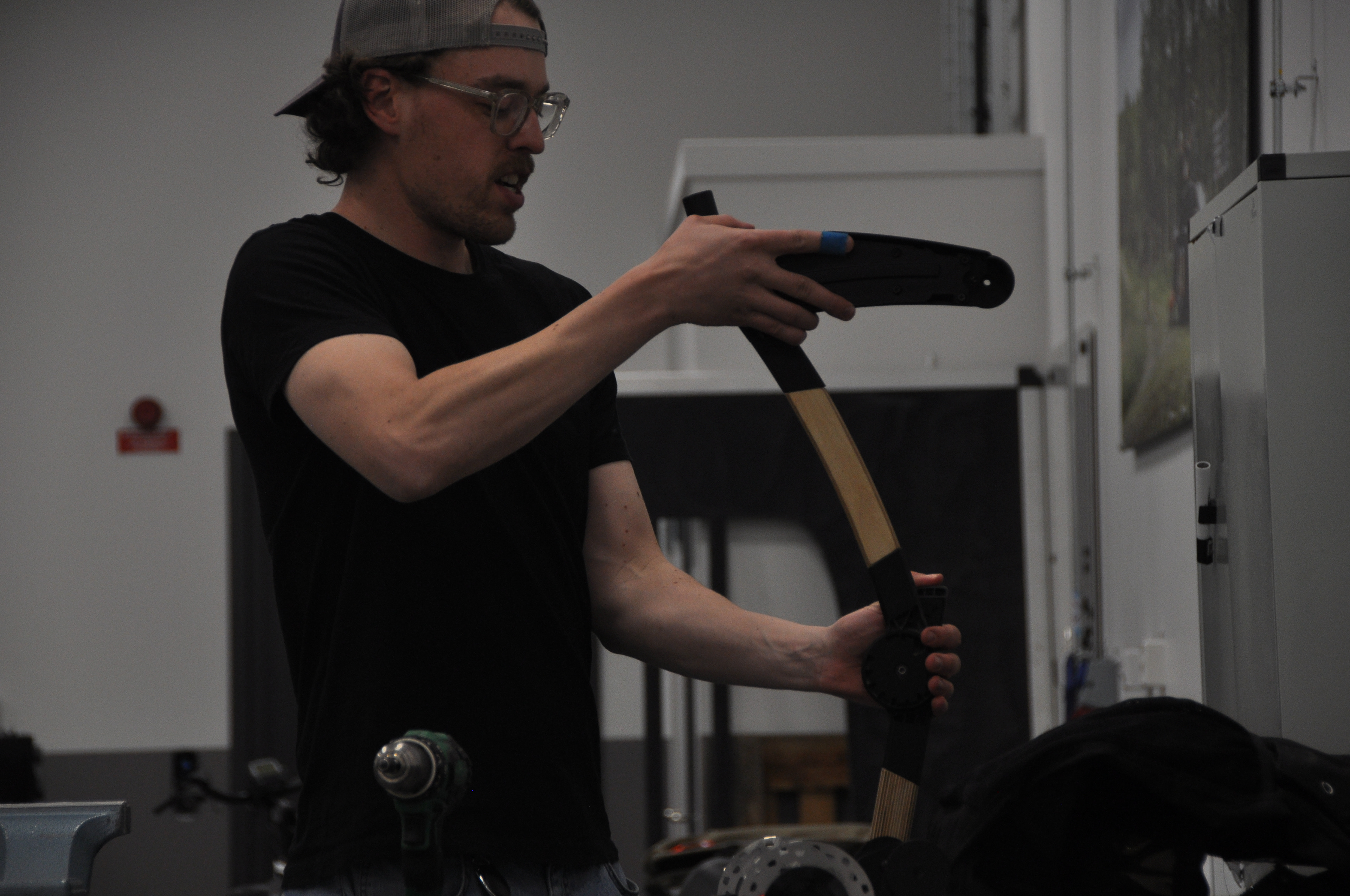 The project resulted in a fully functional prototype, where the original aluminum frame was replaced with birch plywood, and the joint design was reworked to better suit the new material’s characteristics.